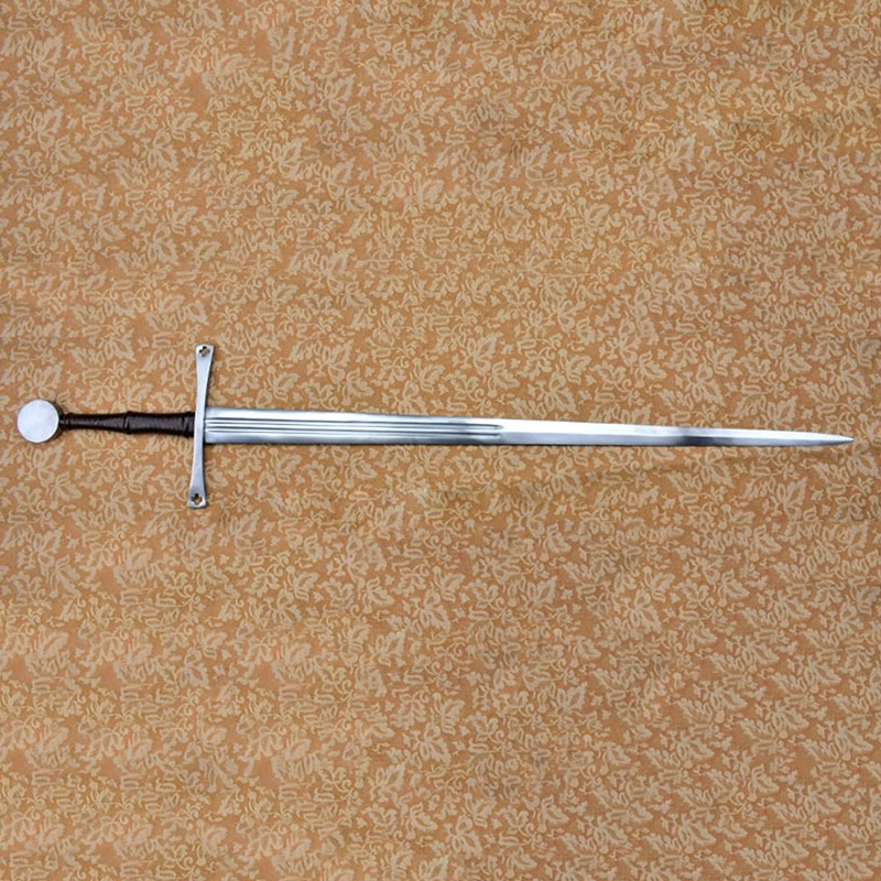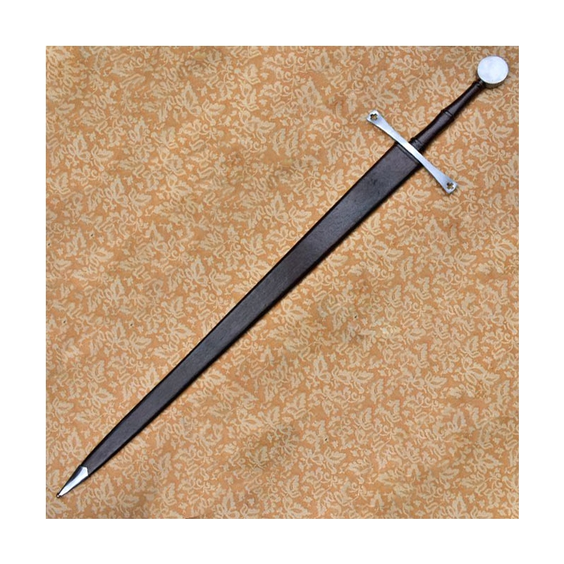 The sword is matched with a wood-core scabbard which is wrapped in stitched leather of high quality to match the grip. A protective steel chape completes the scabbard.