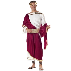 Includes: Long one-piece white costume with gold sequin accents, burgundy shoulder drape with Gold trim, Gold vinyl belt with Velcro closure and crown. Sandals not included. 100% polyester, exclusive of trim.