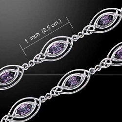 Celtic Knotwork With Gemstones Silver Bracelet 52-TBG282