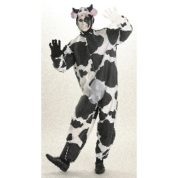 Includes: black & white cow print jumpsuit, headpiece with attached horns & ears and of course the udder. Gloves, shoes, and make-up not included.