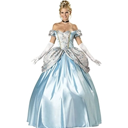 In the Enchanting Princess Elite Collection Costume, you won’t need a fairy god-mother to create a magical evening when you make an entrance as the Enchanting Princess. The lovely Enchanting Princess Elite Collection Plus Costume is a fully finished garment including a full-length light blue satin and brocade ball gown with back zipper closure, attached silver, white, & light blue brocade attached peplum. A hoop petticoat gives the gown its fullness, and elegant long white gloves and a jeweled choker and sequined tiara complete the look. Pair with Prince Charming for a royal couple’s costume. You’ll enjoy your evening long past midnight!