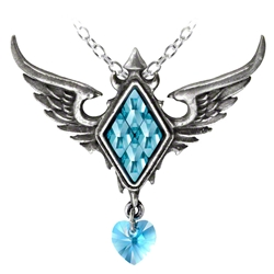 Depicts winged diamond with suspended heart