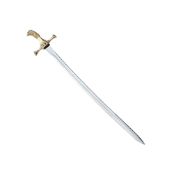 Our German Hunting Sword / Sabre is one of the variations of this hunting sword style that can be found in the National Museum at Munich, Germany and most closely resemble that of one in the collection of the Wallace Museum in London, England. The unique and ornate workmanship of early hunting sabres is wonderfully recreated in this all brass hilt sword. Its origin in design is from Bayern (Southern Germany) dating around 1540. With its slightly curved serrated blade it was quite effective for hunting. This sabre boasts, a carbon steel 29-1/2″ long blade and an overall length of 39″. Sheath included.