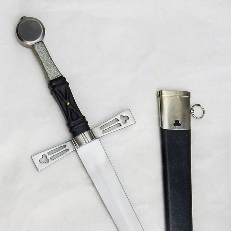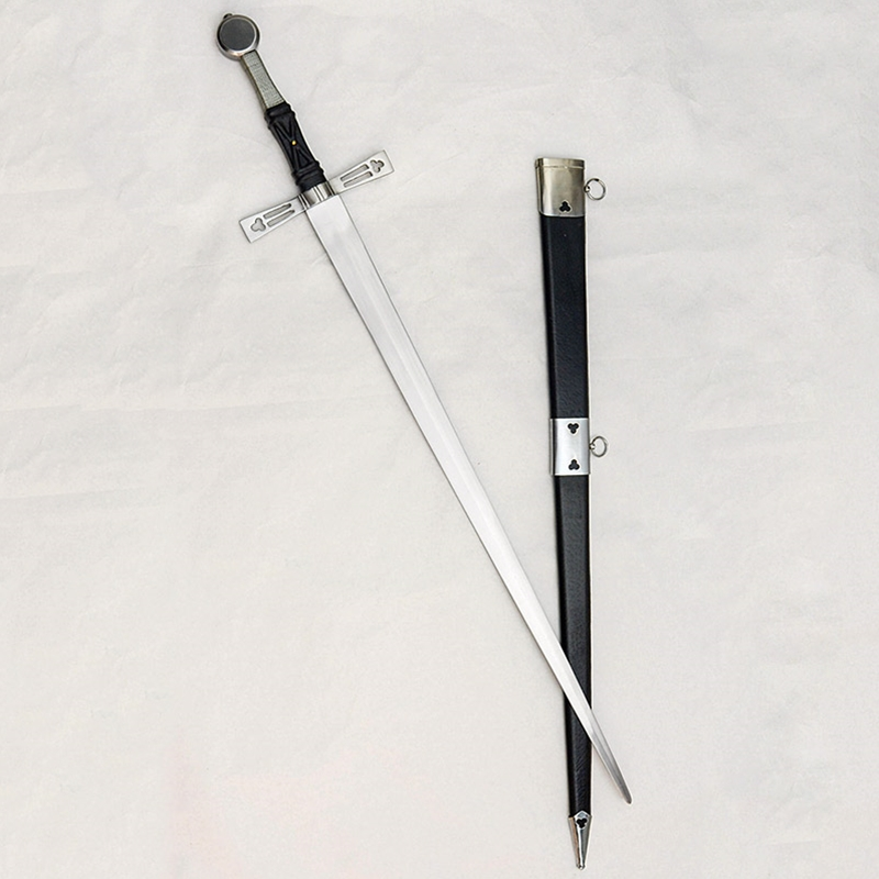 This stage and sport combat version of the Gothic Longsword has a blade with thick edges and a rounded tip that is able to handle the rigors of extended blade-on-blade contact. The crossguard and pommel are handcrafted from steel and the wood grip is bound in leather and twisted steel wire.