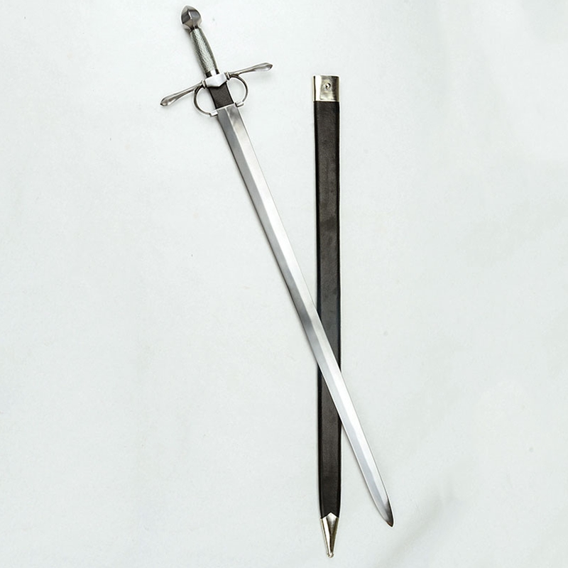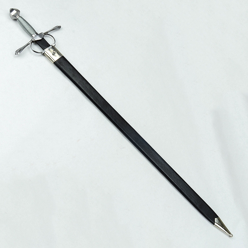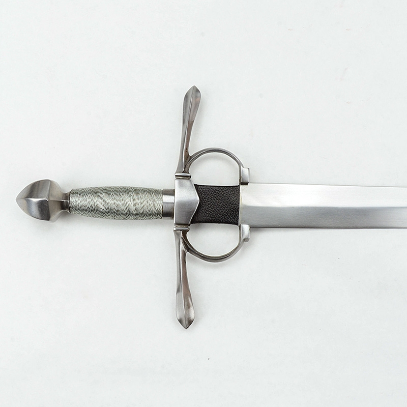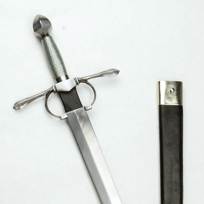 The Opera Nova Armi is a 16th Century Cut-and-Thrust sword and has a blade of high carbon steel. The hilt is steel with a wooden grip overlaid in twisted steel wire. The scabbard is crafted from wood and is overlaid in leather and finished with steel fittings.