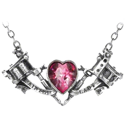 Displays tattoo gun and heart design