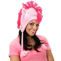 You can be the element of laughter with this Pinkie Pie laplander hat. The cutie mark on the ear flap makes this hat extra special. Called by her full name, Pinkamena Diane Pie, by her parents, she lives above the bakery she works in with Gummy, her pet toothless baby alligator. Licensed by Hasbro for My Little Pony. Made from soft acrylic yarn, one size fits most.