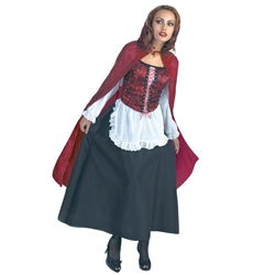In the Red Riding Hood Deluxe Costume you’ll be up for any adventure, just stay clear of those wolves. Bring the fairy tale to life with this deluxe costume. The lady-like outfit includes a hooded knee-length Red cape with a Velcro closure, as well as a long-sleeved one-piece dress that features a Black skirt, White blouse with ruffled cuffs, Black-on-Red floral bodice, and White apron with ruffle trim. The perfect complement? Our Big Bad Wolf costume!