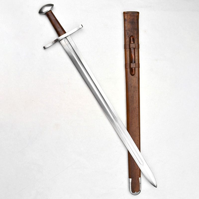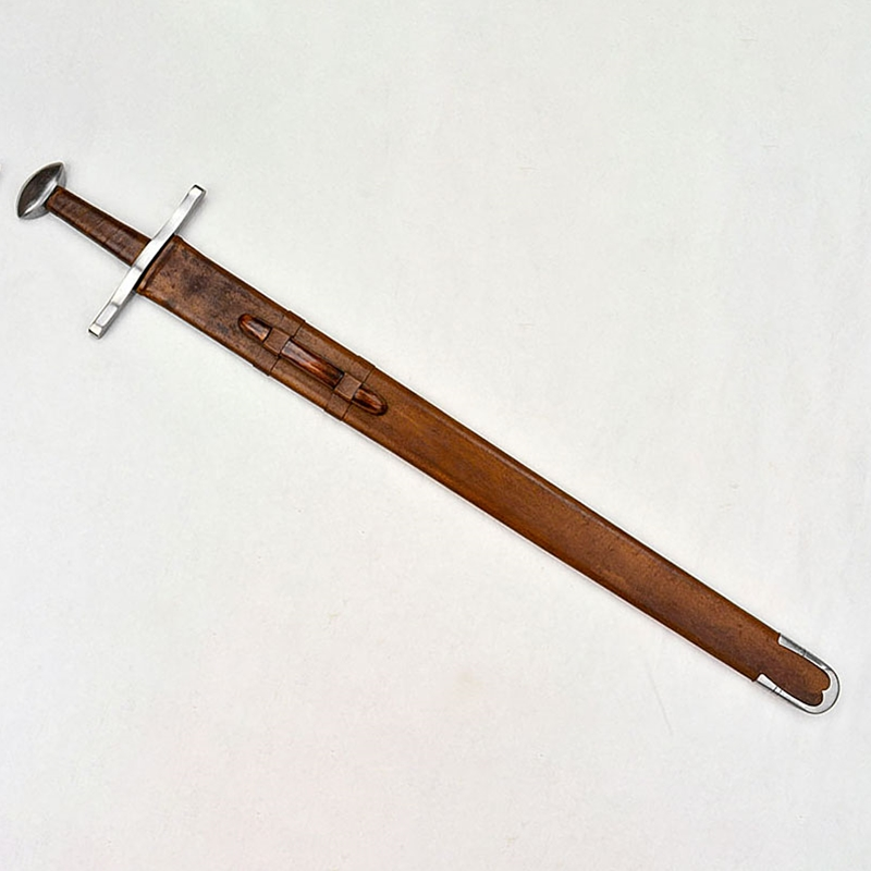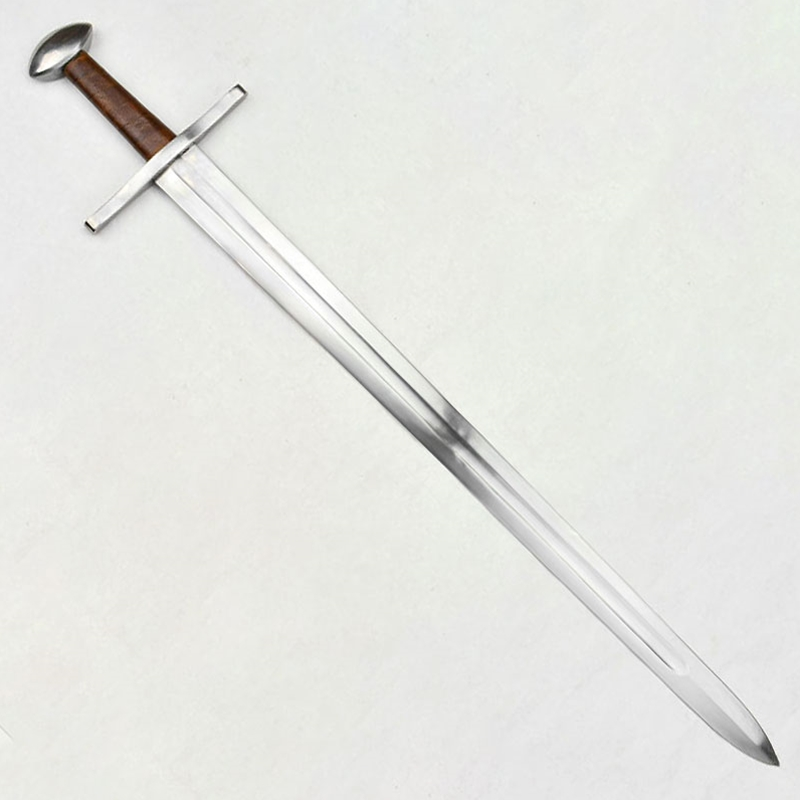 The high-carbon deeply-fullered blade is light and well-balanced, with the wide edges required by the re-enactment community. The guard is wider than that of the earlier Viking designs. Beautifully leather wrapped grip.