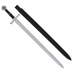 Our Steel Hilt Crusader Sword is well balanced and is a striking example of beauty in design! This very swift and well constructed crusader sword is hand forged from high carbon steel and is tempered over hot coals, as was done back in the middle ages. The stylish guard is the beautiful octagon pommel depicting the symbol of God: The Crusader’s Cross! The grip is made of polished ebony wood. Black leather over wood sheath included.