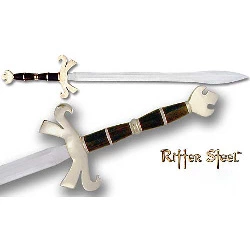 Warlords and warriors rejoice, this two handed battle ready Warlord Sword for you! The Barbaric lines of this mighty two-handed fantasy sword has attributed to its wide appeal! Each functional carbon steel coal forged flared blade is 2-5/8″ at its widest point and reaches 34″ in length. The unique brass guard and pommel is cast by hand and a heavy brown leather scabbard is included. Overall length is 47″.